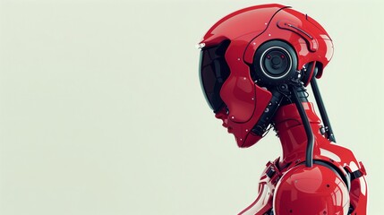 Red humanoid robot in a minimalist sci-fi setting, futuristic technology