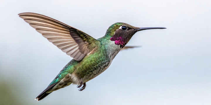Beautiful Hummingbird in Flight on white background . AI generated Illustration.