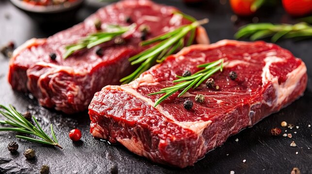 Workers in a meat processing factory dressed in protective gear are carefully handling large cuts of beef on stainless steel tables during processing hours Generative AI