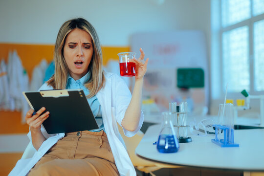Surprised Scientist Discovers Unexpected Results in the Lab. Shocked researcher working in the Laboratory holding a test tube