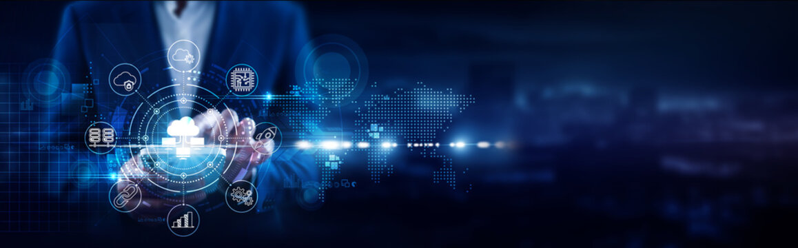 Cloud Computing Technology and Data Infrastructure Illustrated on a Digital Interface.