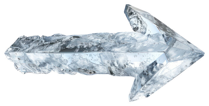 Dynamic arrow made of shattered ice particles moving forward, symbolizing speed and progress against dark brick wall background, creating striking visual impact