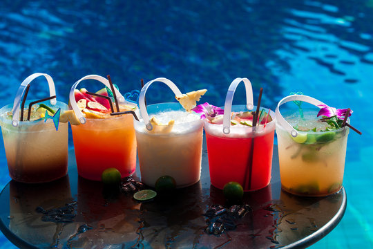 Selection of cocktail in ice bucket special drink for pool party
