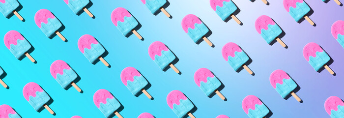 Minimalistic wallpaper background with milky multicolored ice cream in a pastel color palette.