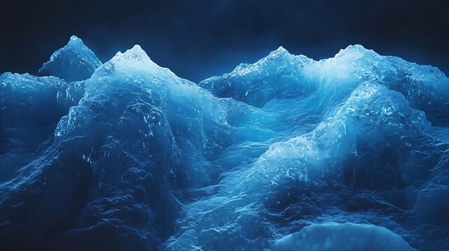 Glowing ice mountains, night, arctic, digital art, background, texture