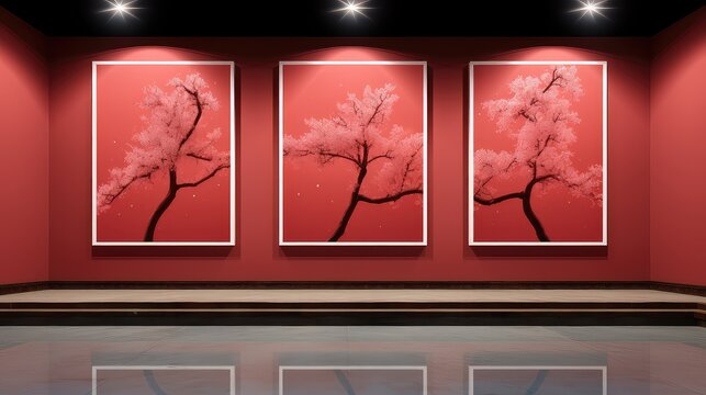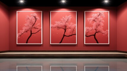 An avant-garde fashion exhibit, abstract rock-inspired structures forming a harmonious retail space, sheer curtains framing the display