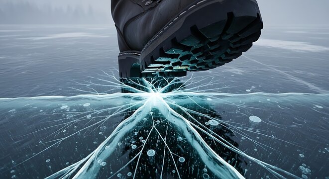 Sharp shards of fractured frozen material burst upward from a central impact point