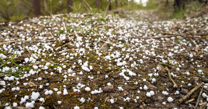Hailstorm with ice pellets hitting the ground severe weather