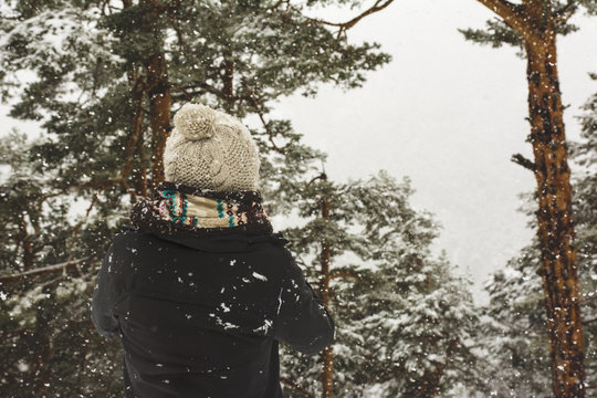 Unknown woman at snowy weather.