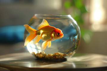 A goldfish in small aquarium