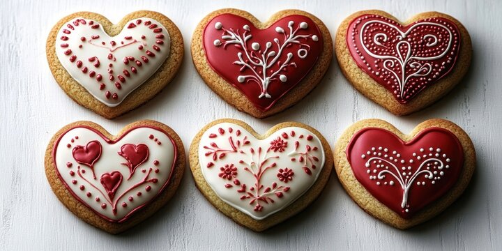 Heart-shaped cookies with pink and purple icing on transparent background png