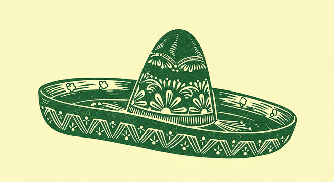 Green sombrero with floral pattern celebrating mexican culture and tradition