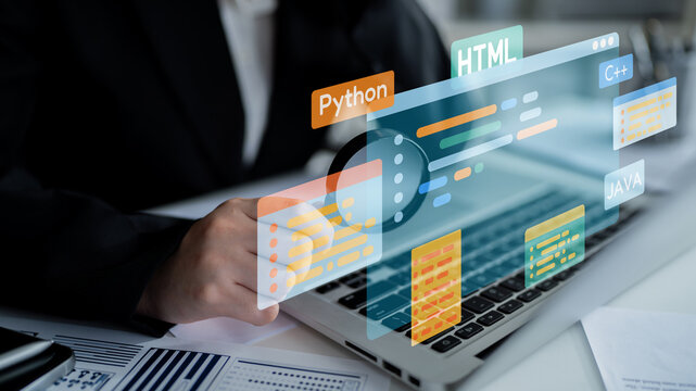 Software development with coding overlays, programming languages, developer tools, mobile app creation, and advanced programming for digital product development and software solutions. Entice