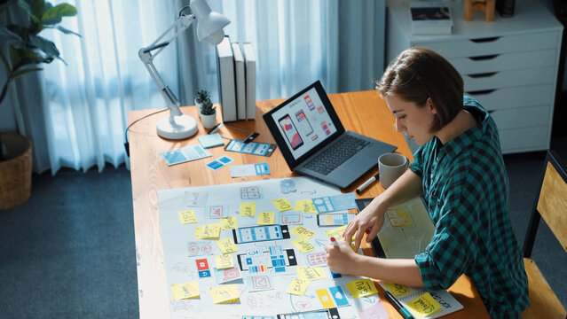 Engineer programmer using laptop analyzing software coding and development at various information on futuristic virtual interface. Data scientists. Algorithm. IoT.  learning of artificial intelligence