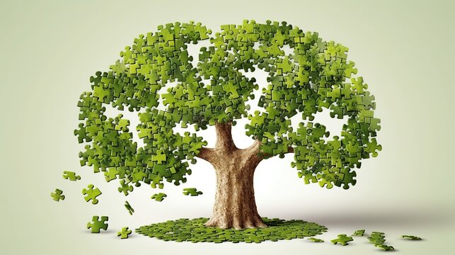 A puzzle in the shape of a tree. The concept of preserving the environment, nature and ecology of our planet