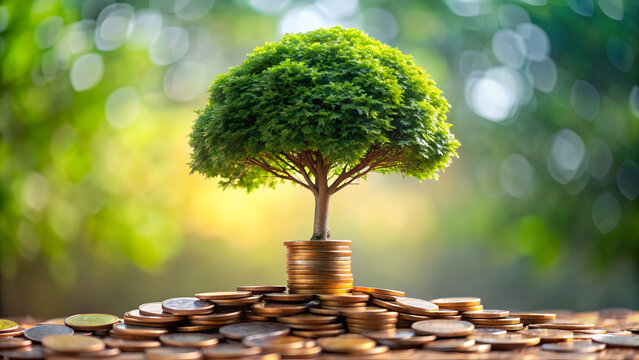 A tree with leaves made of coins, depicting the idea of money growing over time, like a tree. The tree can be placed in a serene, natural environment to emphasize long-term growth and stability.