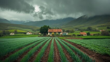 Mountain path leading to the sun scenic landscape with green hills ideal for travel and adventure co
