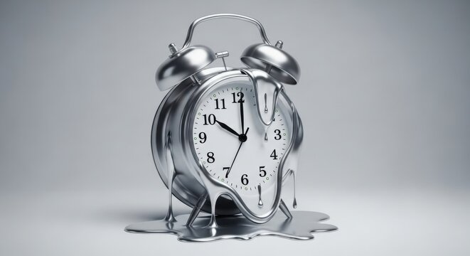A surreal melting clock with distorted features, creating a visual representation of time distortion and the fluidity of temporal perception