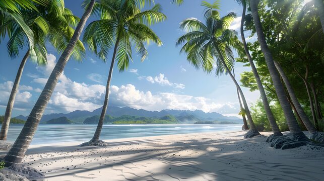 Serene tropical beach with crystal clear waters and palm trees