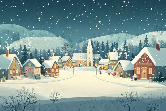 Charming Victorian homes glow under a starry, pastel twilight sky