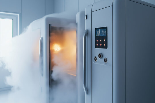 Cryotherapy cold system. Treatment inflammation. Recovery wound. Therapy temperature. Injury relief. Medical-grade cryotherapy system for cold vapor treatment.