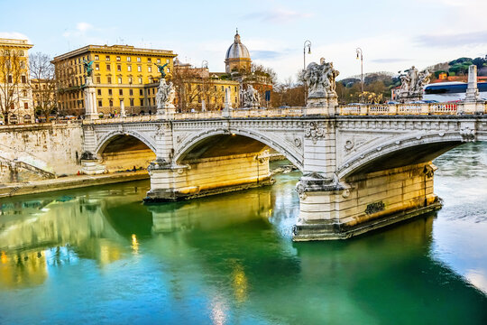 Ponte Vittorio Emanuele II, Tiber River reflection. Rome, Italy. Bridge first built late 1800's.