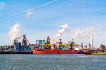 Steel industry plant and North Sea Canal in seaport IJmuiden near Amsterdam in Netherlands