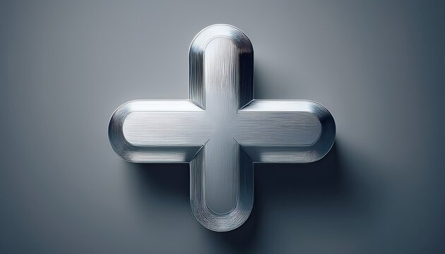 a 3d rendered light grey metallic plus symbol with rounded edges and subtle beveling