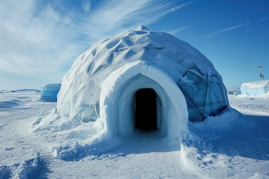 Real snow igloo house in the winter.