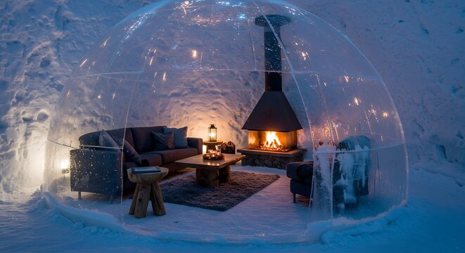 Igloo Living Room with Fireplace in Snow