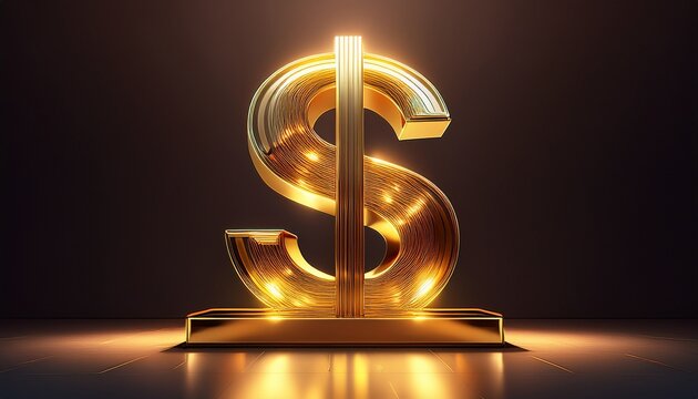 Abstract golden wire curved arrow sculpture with luminous glow