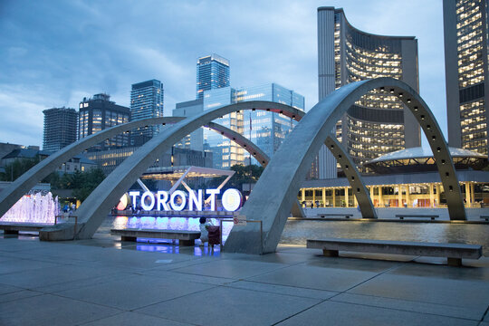 Beautiful view of The Toronto Sign is an illuminated three-dimensional sign in Nathan Phillips Square in Toronto, Canada