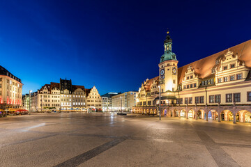 Germany, Saxony, Leipzig, Illuminated old town square at night