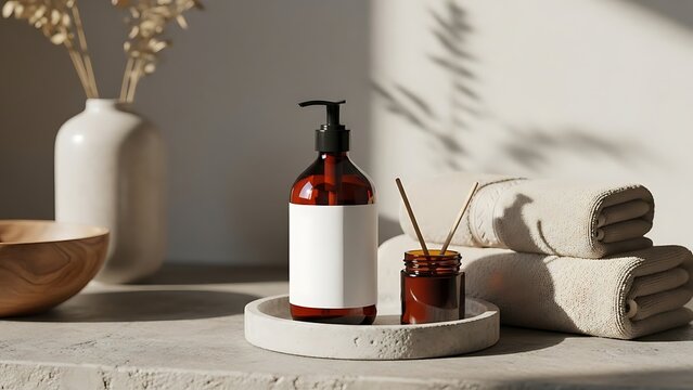 Serene Spring Meadow Candle: An illuminated candle casting a warm, inviting glow, nestled on a wooden tray alongside natural elements, evoking tranquility and the essence of spring.