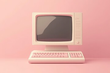 Retro beige floppy drive ejecting 3.5-inch disk on neon grid wireframe 3d render