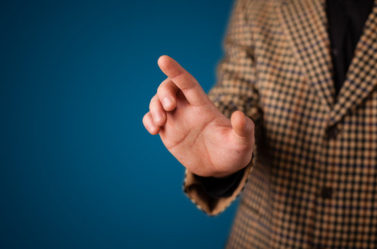 man pressing an imaginary button