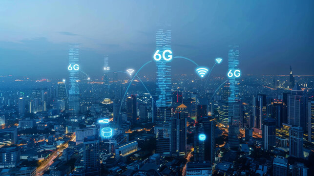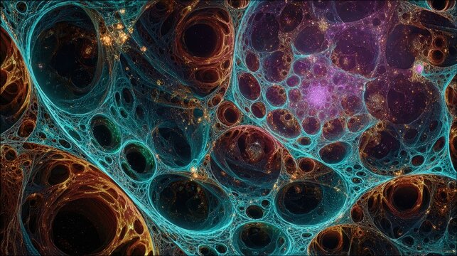 Dynamic Energy Transfer in a Distorted Imaginary City with Glowing Lights and Dark Background