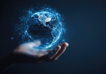 A hand holds a glowing, digital globe (2)