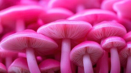 A captivating close-up of vibrant pink mushrooms showcases their unique structure and color, highlighting the beauty and diversity of nature’s fungi in an intriguing, artistic manner.