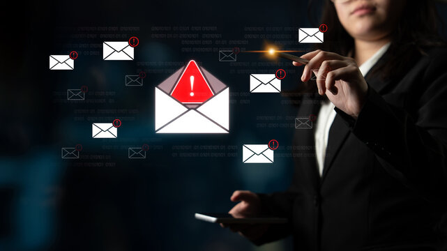 Urgent warning alert glowing bright red exclamation mark on finger, digital danger concept, critical alert notification, cybersecurity threat, system error, immediate action needed