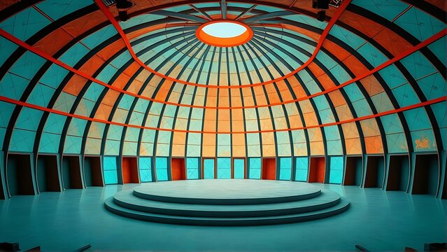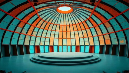 Glowing geodesic dome hosting futuristic subterranean research habitat with lit walkways