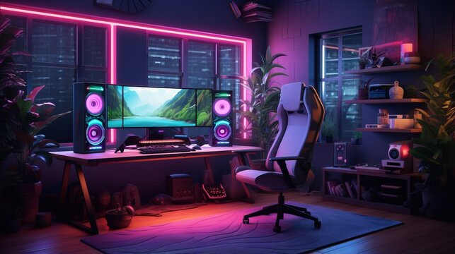 vibrant gaming setup with rgb lights in modern entertainment room – futuristic technology and entertainment concept