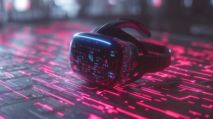 VR headset on futuristic circuitry background. Concept Technology, innovation