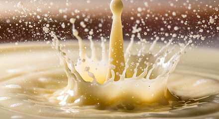 A captivating closeup captures the dynamic moment of a liquid drop impacting a smooth surface, creating a mesmerizing splash with intricate crownlike formations and delicate droplets suspended in mida