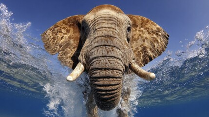 Majestic whale breaches surface of ocean, showcasing its impressive size and unique features. sunlight glimmers water