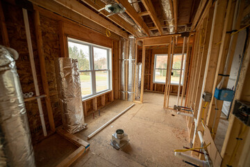 Contractor performing a room addition, carefully framing walls, adding windows, and integrating new construction with the existing home design