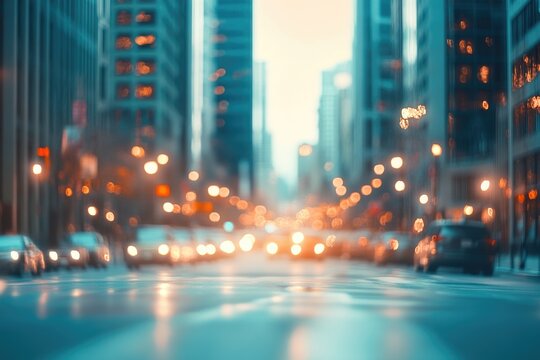 Abstract urban background with blurred buildings and street  shallow depth of focus.