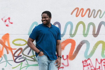 Multigenerational diverse family enjoying front lawn by modern glass-front home
