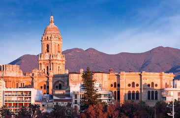 Cathedral of the Incarnation Catedral de la Encarnación in Malaga, Spain in the garden in sunshine