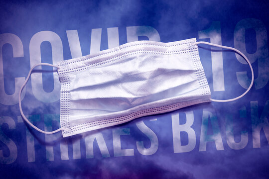 Lettering Covid Strikes Back and medical mask. A new jump in the incidence of the Omicron strain. The return of the coronavirus